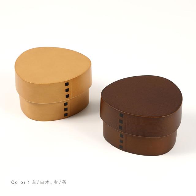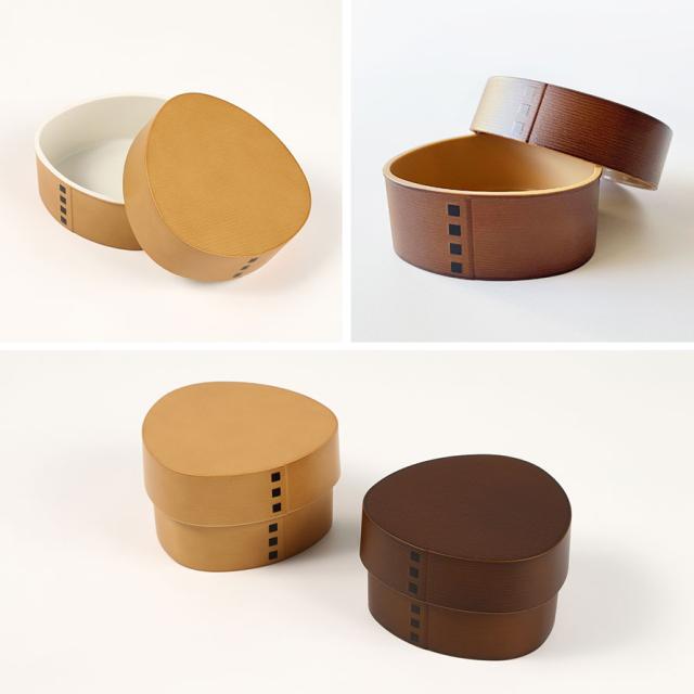 まるで木製の曲げわっぱのような質感に職人の手仕事で仕上げられたおにぎりケース。わっぱ弁当のミニチュアみたいなカタチが可愛いケースです。