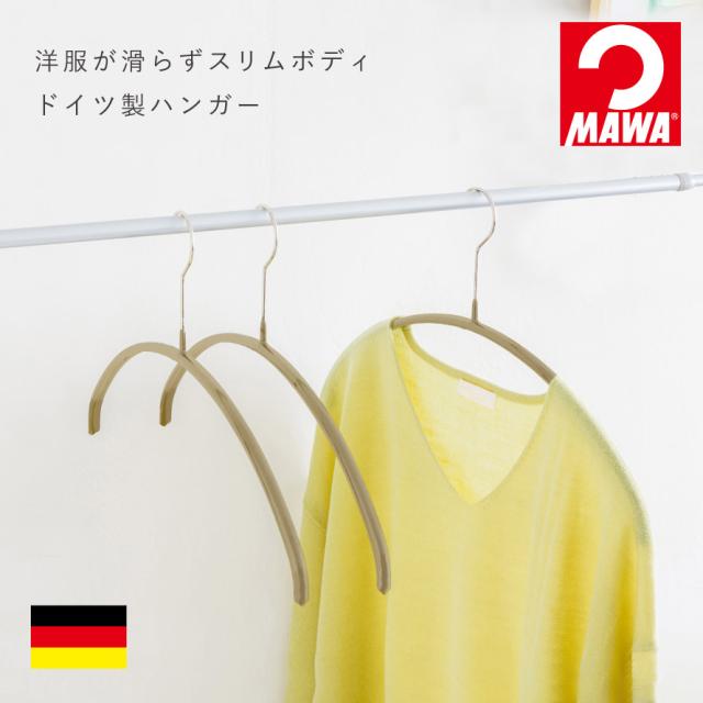 洋服がすべらずスリムなボディで、洋服を綺麗に保存できるドイツ製ハンガー「MAWA」。厚さ1センチのスリムボディ。