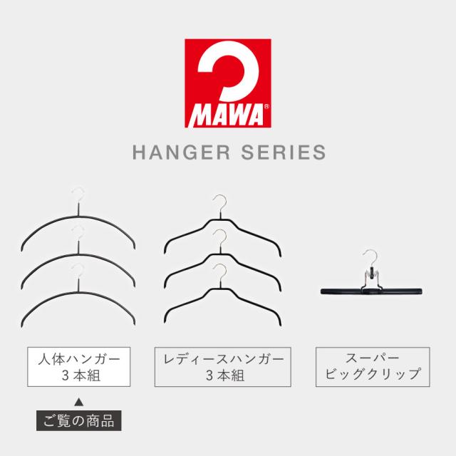 マワハンガー mawa ハンガー 40cm 3本 セット すべらない 滑らない 省スペース スリム クローゼット 収納 肩 跡つかない 型崩れ かたくずれ防止 マワ 人体ハンガー 3本組
