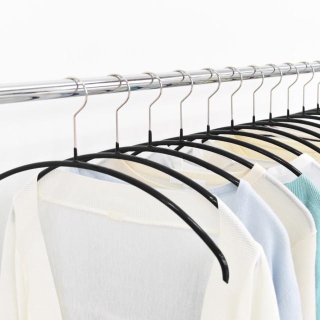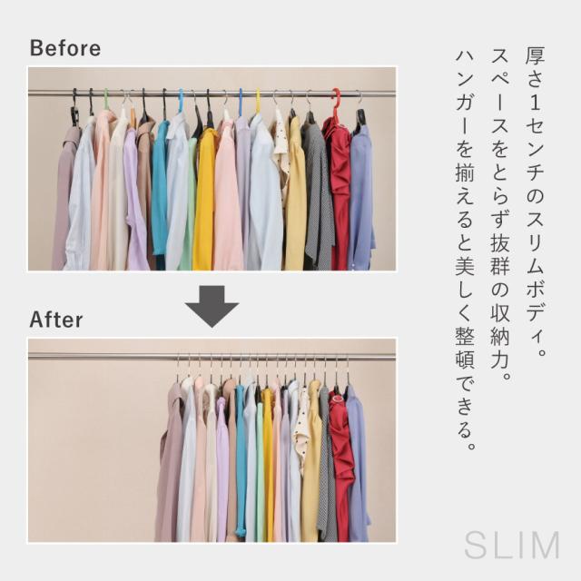 クローゼットなどでもスペースをとらず抜群の収納力。ハンガーを統一する事で肩のラインが並び、見た目もすっきりして素敵に美しく整頓できます。