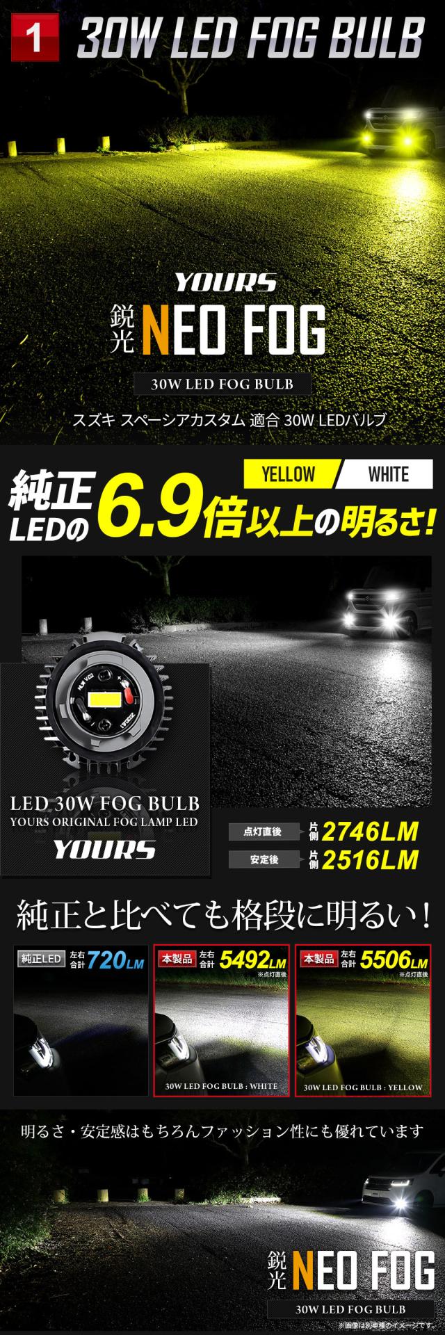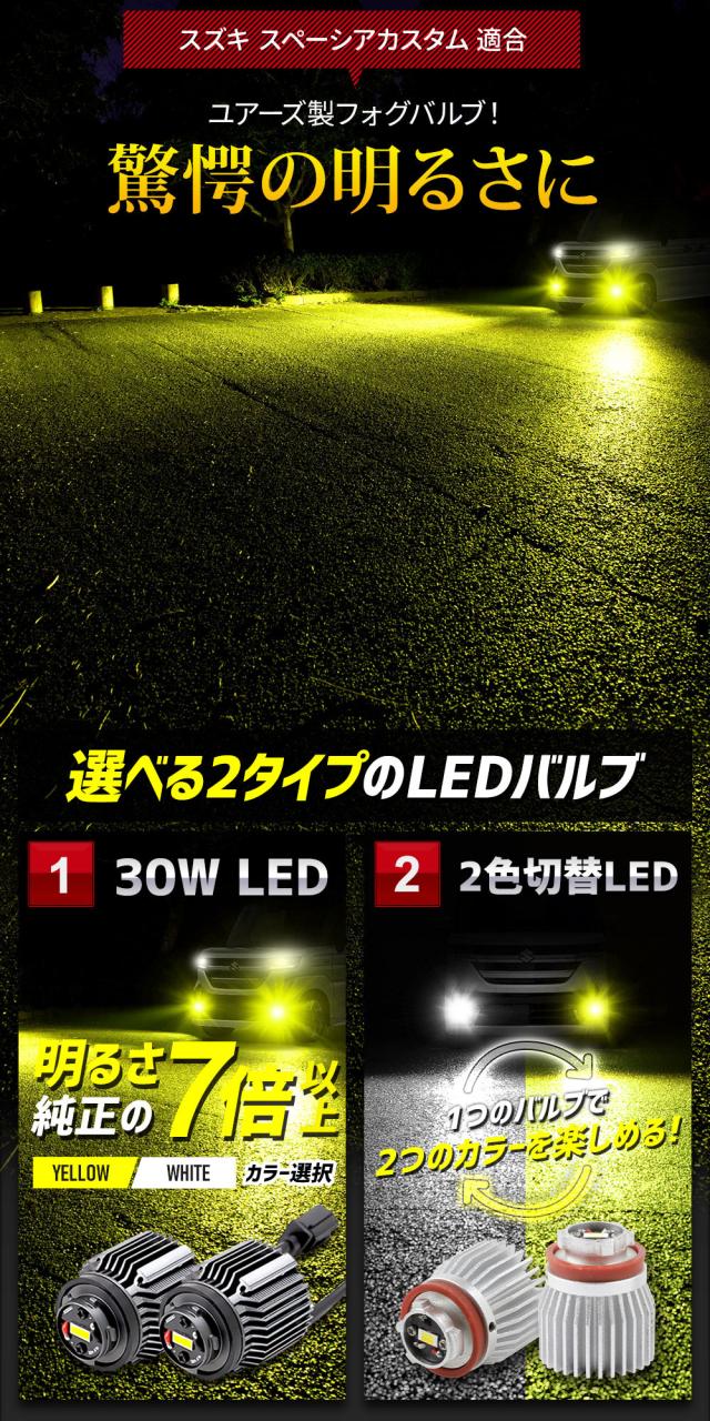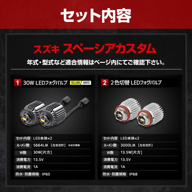 [只今タイムセール開催中]スペーシアカスタム 適合 純正フォグランプ交換用 L1B LEDバルブ 2タイプ [ホワイト] [2色切替] フォグ スズキ SUZUKI [1]