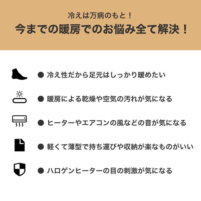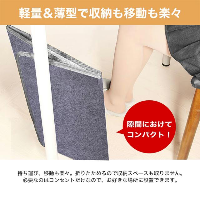 ヒーター面は広く、広範囲に暖めますので、冬場エアコンの死角となる足元をしっかりとカバー。