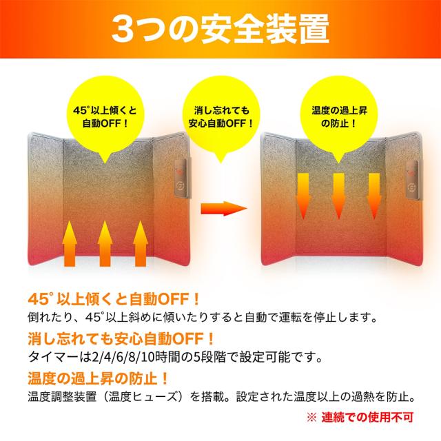 温度の上がり過ぎを防ぐ安全装置の自動OFFタイマー付き、