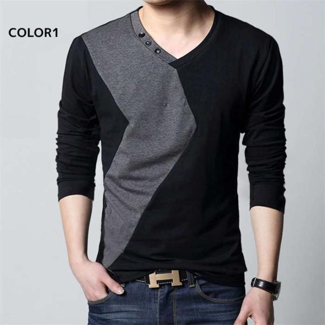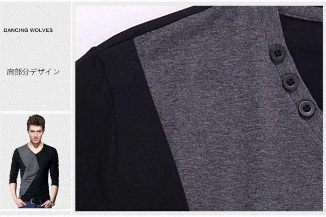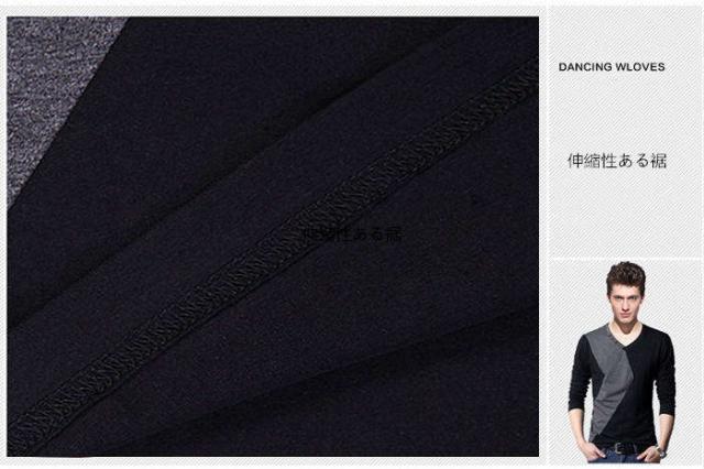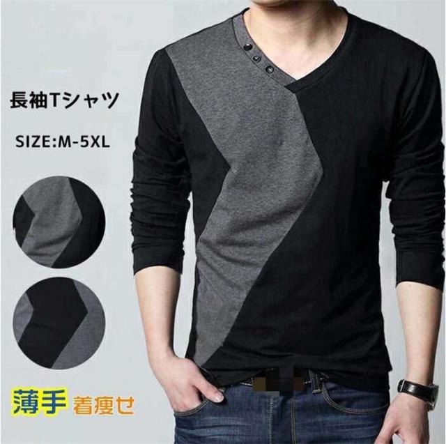 商品名:メンズtシャツ 長袖tシャツ 大きいサイズ tシャツ Vネック メンズtシャツ カットソー オヤレ ストレッチ トップス 通気性バツグン 着痩せ 柔らかい 薄い 薄手 シンプル カジュアル ファッション tシャツ ビッグサイズ 大きいサイズ カラー配色 お兄系 個性的 春秋 tシャツ