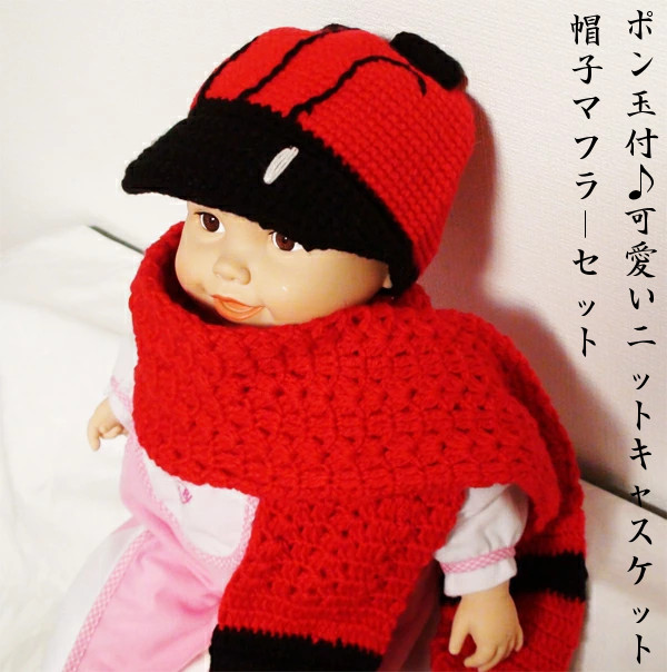 真っ赤なニット帽にマフラーで見た目もとってもあたたかそう!