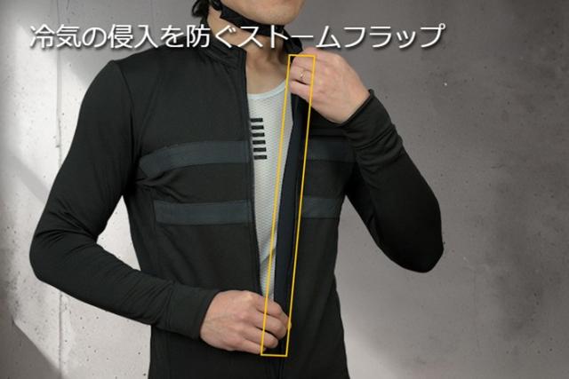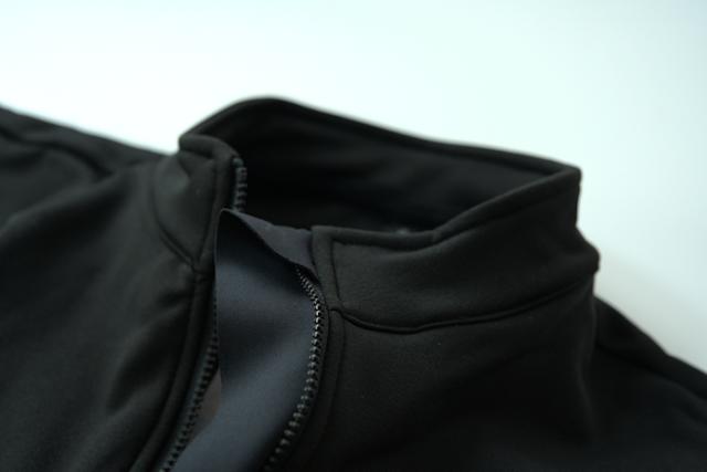 ・少し高めの襟足、ファスナー部の全長にわたってストームフラップを配置し冷気の侵入を抑制。
