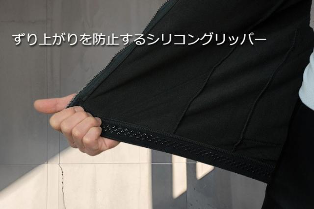・腕を伸ばした乗車中の姿勢でも手首が露出しない、やや長めのデザイン。