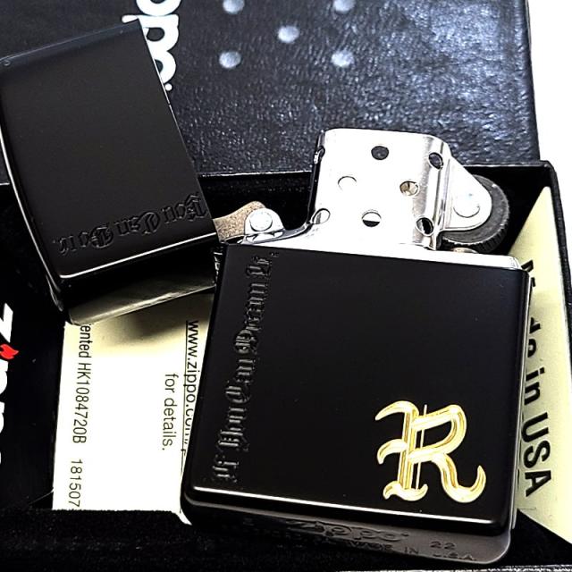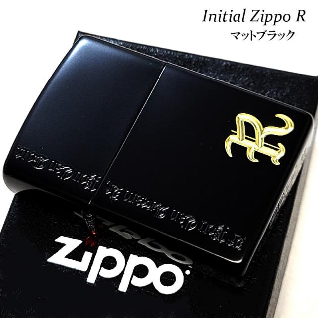 ZIPPO ライター イニシャル R アルファベット 彫刻 ジッポ おしゃれ マットブラック シンプル 艶消し 黒 ネームオブラブ メンズ
