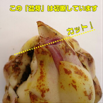 たい、10月になるとほぼ本州物は堀りあげが終わります。 掘り上げた球根は洗浄し、一回、冷蔵庫に入れます。 これは折角、休眠に入った球根が目を覚まさない様に。 でも、まれに、冷蔵庫から取り出してお届けまでの保管中に発芽してしまう物があり ます。 気の早い球根が休眠から目覚めようとしてしまうのですね。 そんな時はバッサリとその芽を切ってしまいます。 この芽。業界では「盆芽」と呼ばれているのですが、なぜかあまりにも業界用語過ぎ るのか、インターネット検索にも出てこない用語です。 あれっ?ひょっとして「凡芽?」だったかな?なんて思って調べても出てこない特殊 用語。 下手に伸ばして真冬に地上部に出てきたら、それこそ、霜などでやられてしまいま す。 なので、強制的に切り落とし撤去です。 あくまでも自然での正しい発芽時期は早くても3月ごろ。 それまではしっかりと土の中で。 |