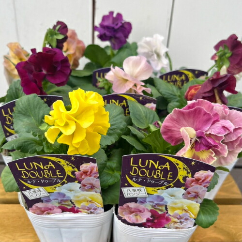 八重咲きパンジー ルナ・ドゥーブル 3.5号(直径10.5cm)ポット苗 1個 色おまかせ パンジー ビオラ すみれ 苗 寄せ植え