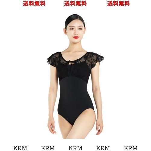 [s.lemon] バレエ レオタード 大人半袖レースダンス レオタードかわいい 人気黒160