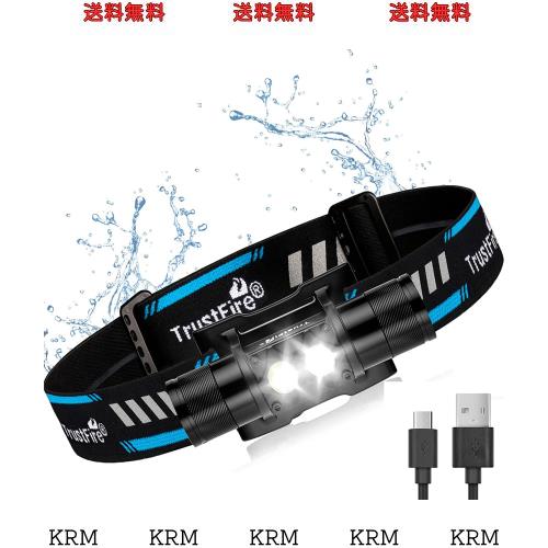 Trustfire H5R二重光源ヘッドライト 充電式懐中電灯 600ルーメン超軽量ledライト 5つ点灯モード/電池/充電ケーブル/ヘッドストラップ付き