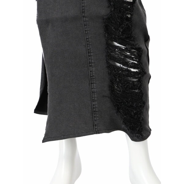 アシメカットロングデニムスカート