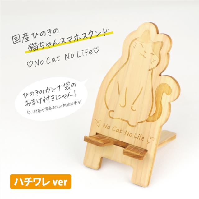 国産ひのき 猫ちゃんスマホスタンド(ハチワレver)