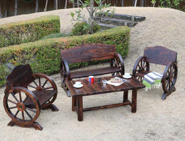 ![]() 車輪ベンチ 2人掛け | ![]() 車輪ベンチ大×1 車輪ベンチ小×1 焼杉テーブル×1 | ![]() 車輪ベンチ大×1 車輪ベンチ小×1 焼杉テーブル×1 |