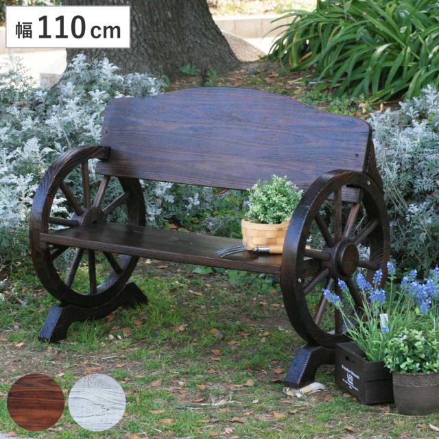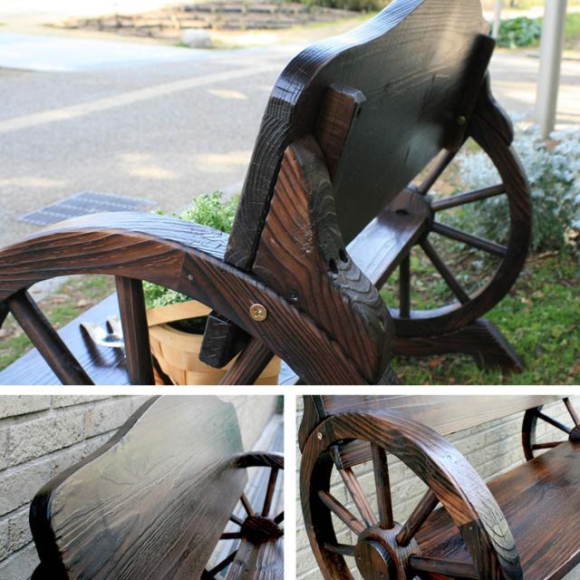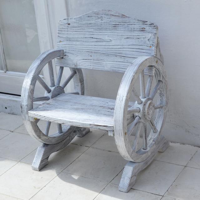 ヴィンテージ風の車輪ベンチ 幅65.5cm