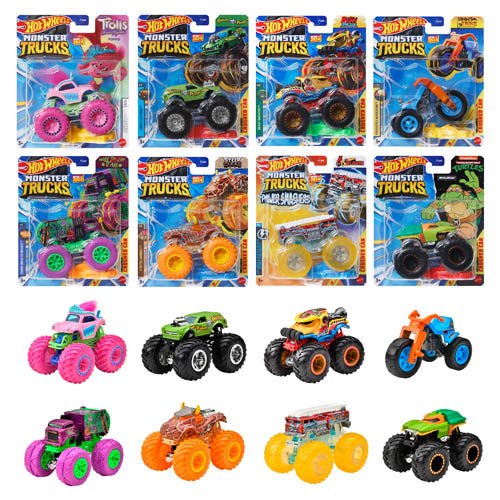 | モンスタートラック×8 ・ポイズン・ピント(Poison Pinto(TM))x1 ・バッシュジラ(BashZilla(TM))x1 ・トライク(HWMT Trike(TM))x1 ・ウィル・イート・イット・オール(Will Eat it All(TM))x1 ・ステア・クリア(Steer Clear(R))x1 ・ファイブ・アラーム(HW 5 Alarm(R))x1 ・トロールズ/ ポピー(Poppy)x1 ・ティーンエイジ・ミュータント・ニンジャ・タートルズ/ ミケランジェロ(Michelangelo)x1 |