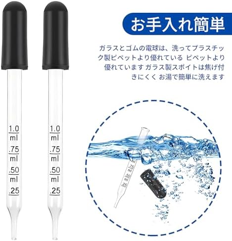 【高品質の素材】高品質のガラスとシリカゲル素材を使用しています。スポイトはガラス製で、目盛りがはっきりしており、繰り返し使用できます。ゴムボールは吸引力が強く、液体をよく吸収します。柔らかいゴムキャップは取り外して洗うことができます。