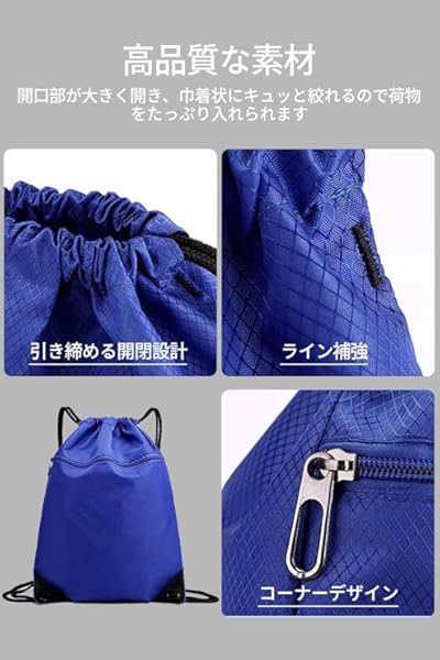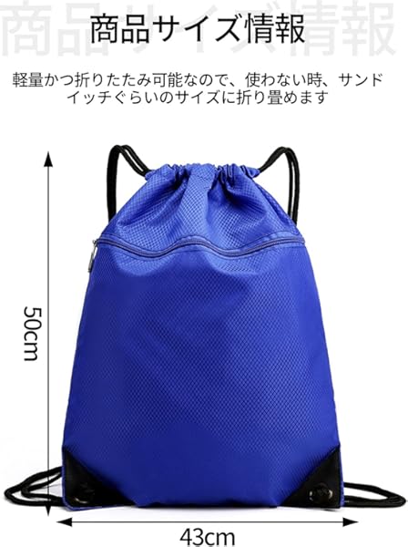ジムサック ナップサック スポーツ ジム ヘルメット入れ 多用途 折り畳み 防水 軽量 多機能 コンパクト ドローストリング バックパック トレーニングポーチ トラベルバッグ 小分け サファイアブルー