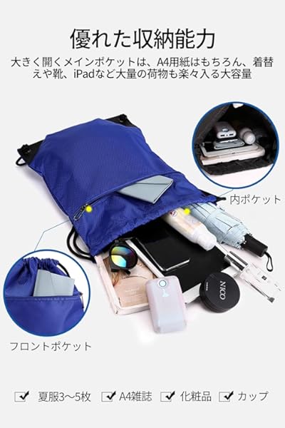 【大容量かつ軽量】このナップサック・プールバッグは軽量で丈夫な素材を使用しており、大量の荷物でも安心して運ぶことができます。スポーツシーンでは着替えやボールまで収納でき、旅行や学校でも大きい荷物を収納して持ち運べます。