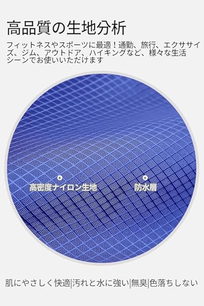 【防水性&耐久性】撥水加工を施した生地です。 防撥水機能に優れ、運動中にかいた汗の侵入を簡単に防ぎ、内部の荷物を濡らさなくて持ち運ぶ可能です。突然の豪雨に濡らされる心配もいりません。(注意点:防水デザインですが長時間の浸水はなるべくお控えください。)