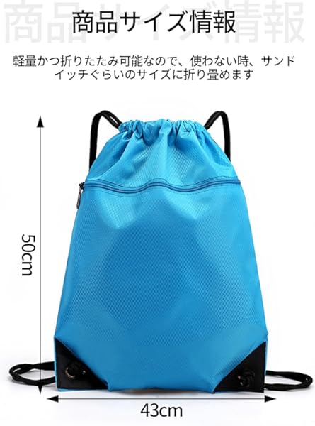ジムサック ナップサック スポーツ ジム ヘルメット入れ 多用途 折り畳み 防水 軽量 多機能 コンパクト ドローストリング バックパック トレーニングポーチ トラベルバッグ 小分け レイクブルー