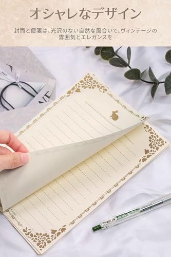 【優れたデザイン】シンプルなアンティーク調のデザインなので、美しくてエレガントな手紙を受け取る側も、手紙を送る方も気分が上がるレターセットです。年齢や性別を問わず幅広い方にお使い頂けます。