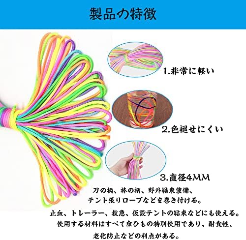パラコード カラード レインボー テントロープ 4mm 約31m 多機能 DIY耐荷重 工具 ハンドリーシュにできる ペット用首輪 アウトドア キャンプ クラフト 用品 多目的 編む用