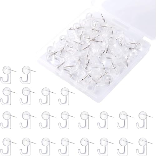 画鋲 後が残らない 石膏ボード ピン 50個 手作りDIY 画鋲 留め具 固定用釘 装飾品釘 様々な場面で使用可能 収納ケース付き (50個 透明な色)