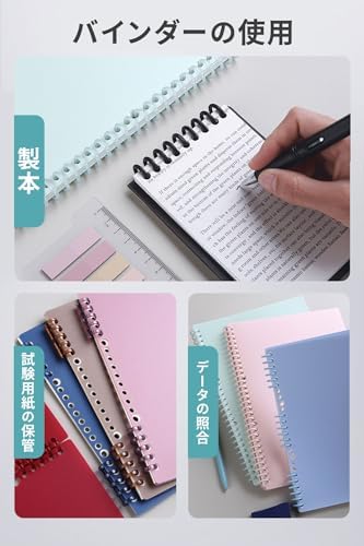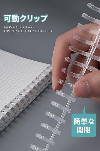 【特徴】リングの長さをハサミでカットできるので、様々なサイズの用紙に対応できます:30穴/A4、26穴/B5、20穴/A5。