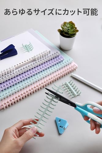【特徴】リングの長さをハサミでカットできるので、様々なサイズの用紙に対応できます:30穴/A4、26穴/B5、20穴/A5。