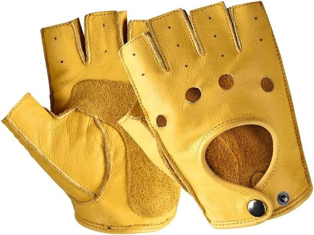ドライビンググローブ 半指 メンズ レザー 手袋 夏 指ぬき 指なし 男性 紳士用 革 運転 指ぬき バイク フィンガーレス ドライブ ドライバー おしゃれ プレゼントイエロー便利取扱い