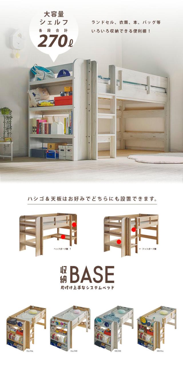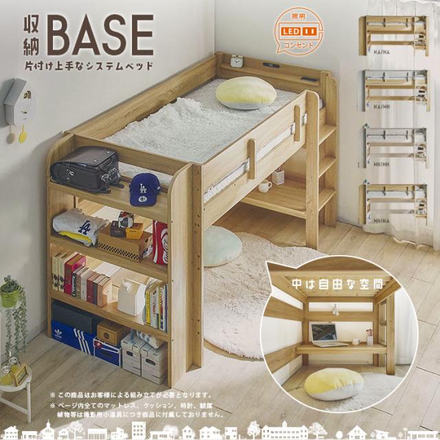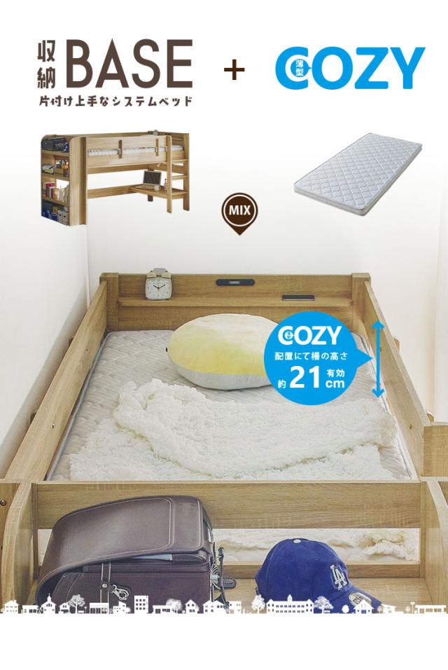 ロフトベッド 二段ベッド BASE(ベース) + マットレス COZY Sサイズセット 4色対応 2段ベッド システムベット すのこ マットレスセット 敷布団 シンプル 宮付き コンセント LED デスク おしゃれ 子供部屋