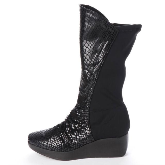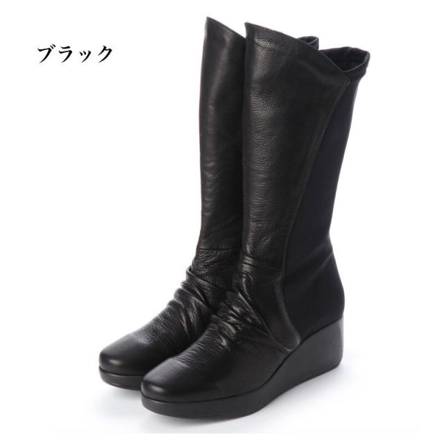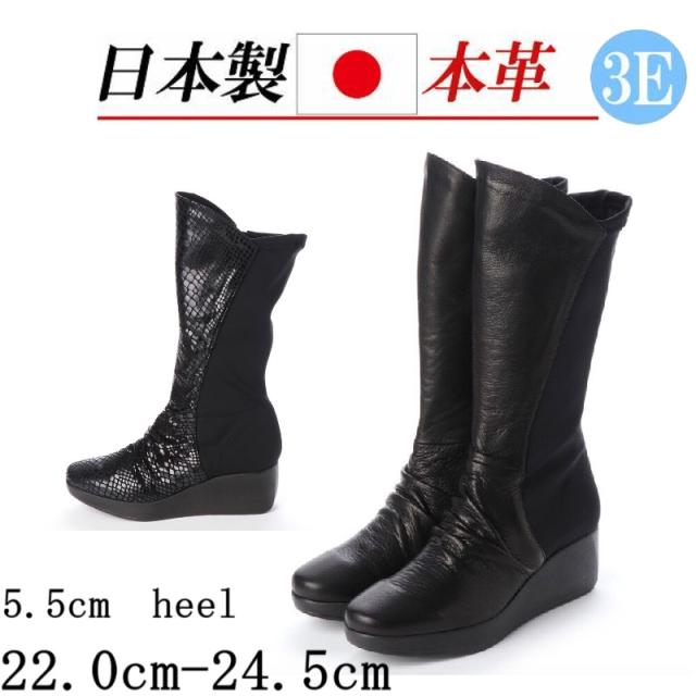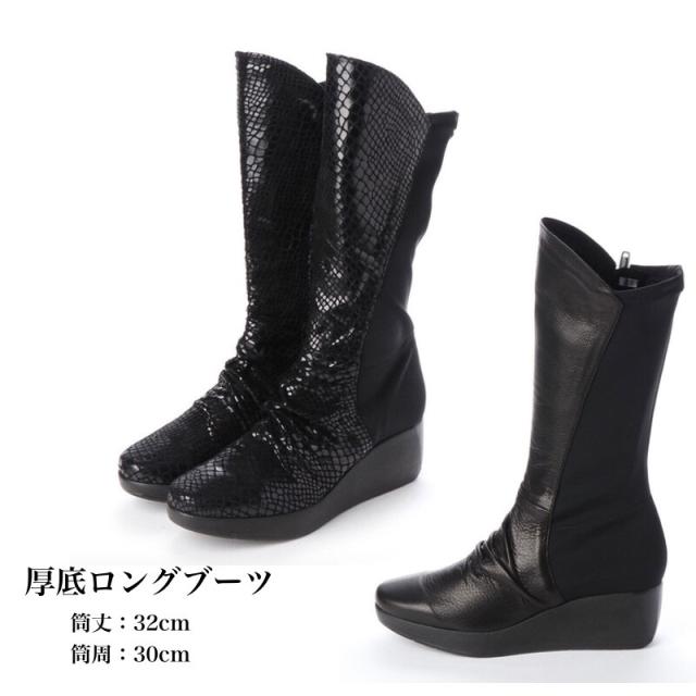 日本製 本革 革 ロングブーツ レディース 厚底 ウェッジソール ブーツ ロング ストレッチ 黒 パイソン コンフォートブーツ 幅広 3e 外反母趾 内ファスナー 履きやすい 歩きやすい 痛くない 美脚 脚長 カジュアル レディースブーツ
