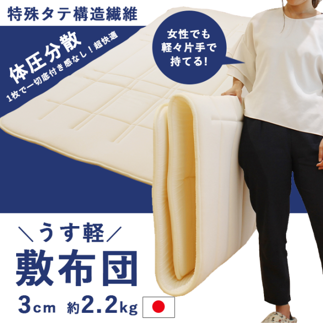 独自のタテ型 繊維構造で 極薄なのに底付き感なしの敷布団