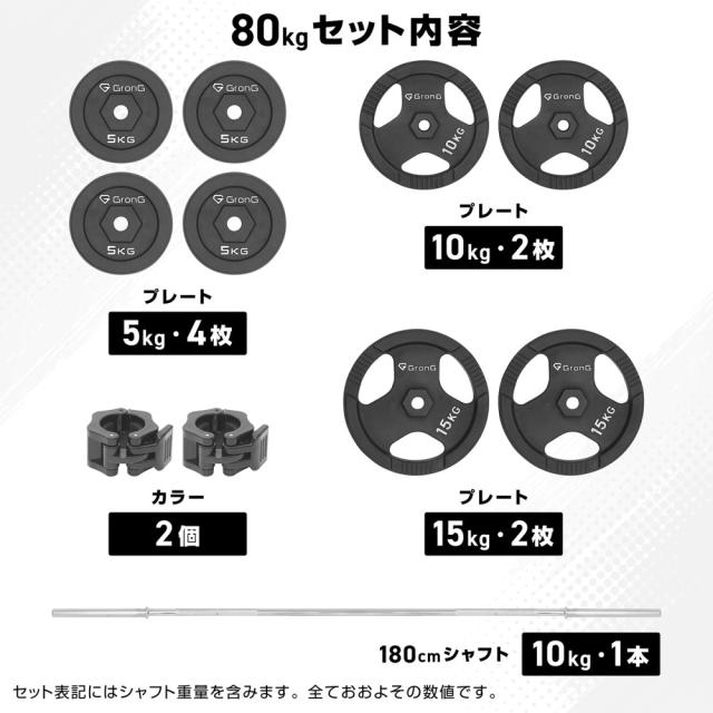 グロング バーベル バーベルセット 80kg 筋トレ アイアン プレート シャフト カラー付き