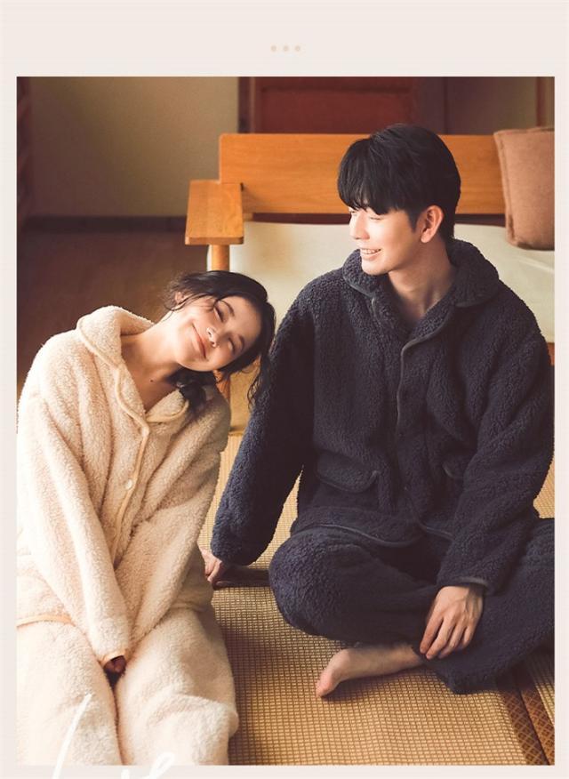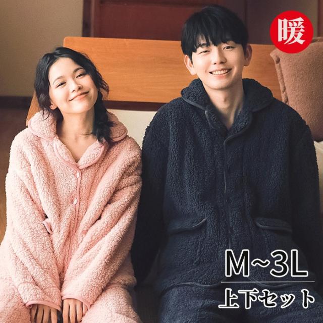 ルームウェア もこもこ パジャマ レディース メンズ 上下セット ペアルック 冬 長袖 暖かい あったか ペアパジャマ 前開き カップル セットアップ 防寒対策 部屋着 寝巻き 秋 冬用 プレゼント かわいい おしゃれ ゆったり リラックス ピンク ベージュ ダークグレー d1398d7cyh5 d1398d7