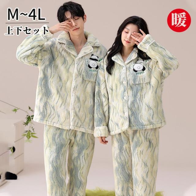ルームウェア もこもこ パジャマ レディース メンズ 上下セット ペアルック 冬 長袖 暖かい あったか ペアパジャマ 前開き カップル セットアップ 防寒対策 部屋着 寝巻き 秋 冬用 プレゼント かわいい