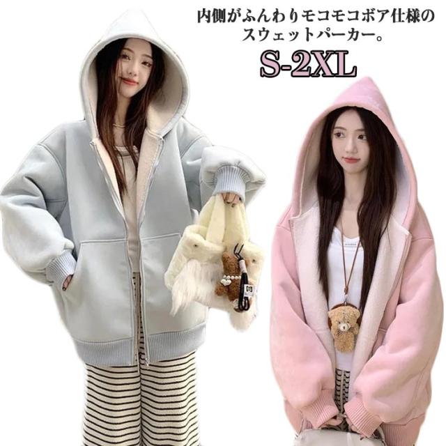 ジャンパー 冬 裏起毛 パーカートップス 厚手 ジップアップパーカー ウェア オーバーサイズ 大きいサイズ 秋 暖かい 裏ボア 無地 スウェット レディース ゆったり ブルゾン アウター パーカー ボア 長袖 フード ジャケット カジュアル 保温 ボアパーカー 通学