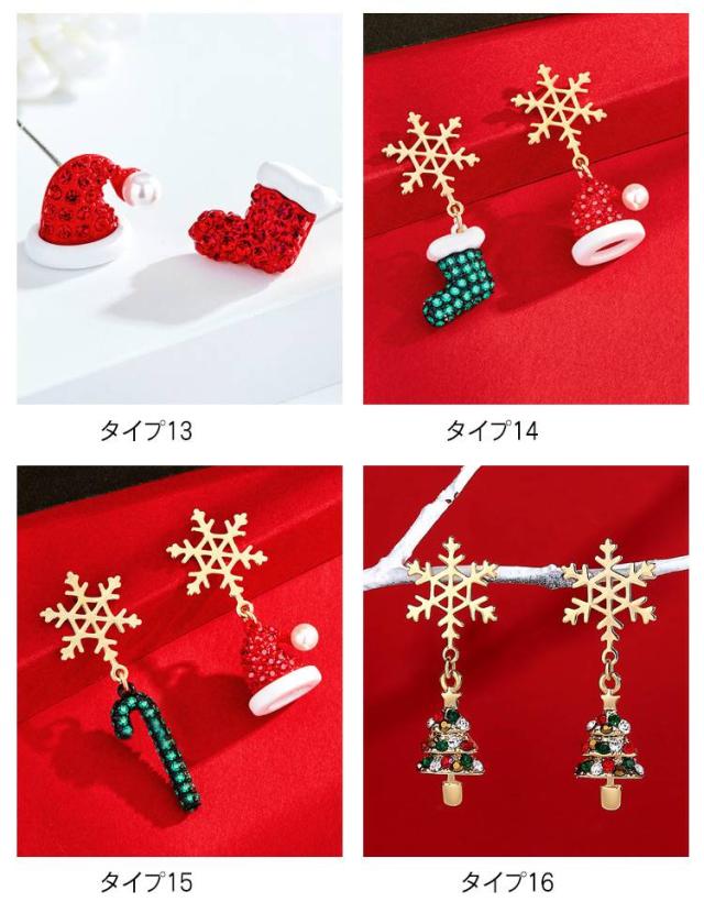 アシンメトリー クリスマス リボン レディース クリスマスツリー ピアス サンタクロース 贈り物 サンタクロース 雪だるま 雪の結晶 シルバーS925針 可愛い クリスマス会 パーティー イヤリング クリスマスギフト 全20タイプ かわいい プレゼント