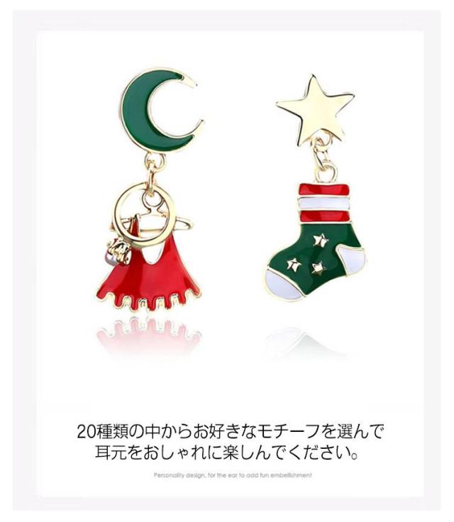 | 大人可愛い、アシンメトリーデザインのピアス&イヤリングです。 サンタ、クリスマスツリー、ブーツ、雪だるま、ギフトなどのクリスマスモチーフ。 針の素材はシルバー925で金属アレルギー対応です。 質の良い合金で作られており、無害で耐久性があります。 自分用にはもちろん、お友達、ご恋人やご家族などへの贈り物にもおすすめ。 20種類の中からお好きなモチーフを選んで耳元をおしゃれに楽しんでください。 | |