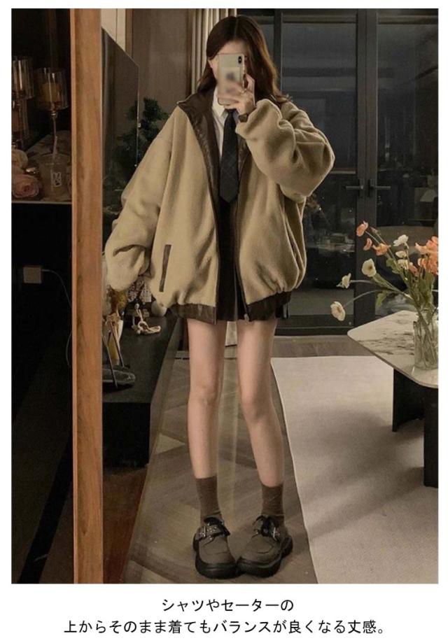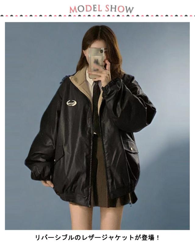 レザージャケット リバーシブル フェイク レザー ジャケット レディース ジャケット ブルゾン ボアブルゾン ボアジャケット 裏ボア ストリート系 暖かい レトロ カジュアル S M L XL 2XL