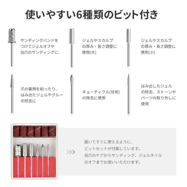 6種類ビット付き ジェルオフ ネイルマシン コンパクト 電動ネイルマシン ネイルマシン ネイルオフ ネイルケア 角質除去 ネイルマシーン 甘皮処理 角質ケア セルフ用 自宅ネイル ネイルマシーン ネイルケア 角質除去