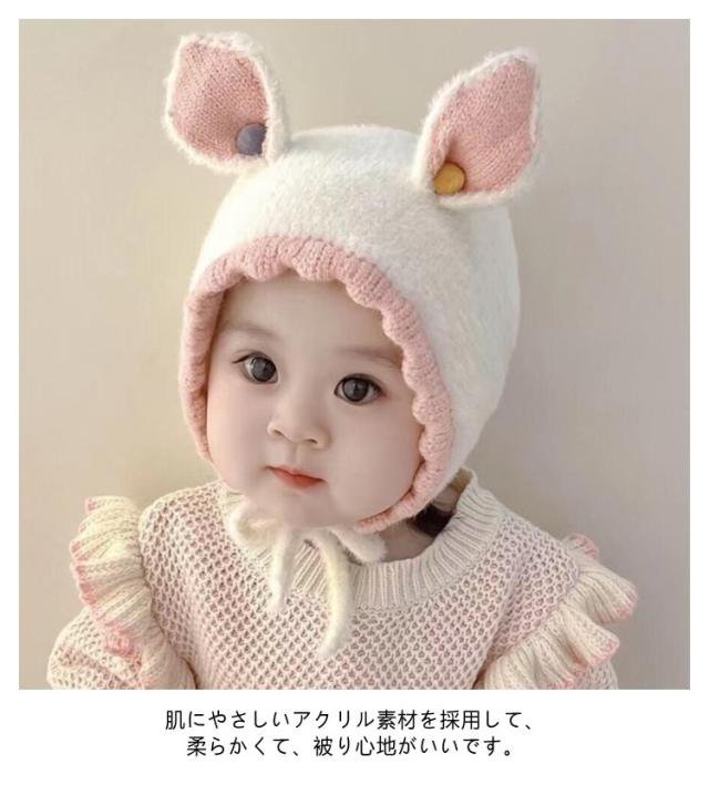 | 防寒対策に!耳付きが可愛いベビーニット帽♪ 耳まで包み込んで寒さから守ります。柔らかく適度な伸縮性で快適な着用感。 肌にやさしいアクリル素材を採用して、柔らかくて、被り心地がいいです。 アゴ部分でボタンで止められるので脱げる心配もなく着脱も簡単! 寒い日はもちろん、秋や春の肌寒い季節にも◎お散歩やアウトドアで大活躍!出産祝いや誕生日の贈り物にもおすすめです。 どんな服装にも合わせやすい、耳付きニット帽です。 | |