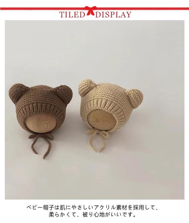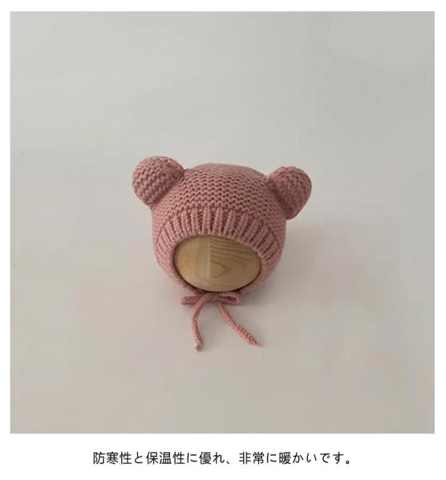 くま 耳付き 赤ちゃん ニット帽 くま耳 ベビー ニット 帽子 キッズ あったか ニットキャップ 子ども帽子 ベビー帽子 キッズ帽子 新生児帽子 耳当て 耳保護 紐付き あごひも 伸縮性高く 頭優しい 保温 防寒 寒さ対策 通園 通学