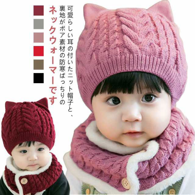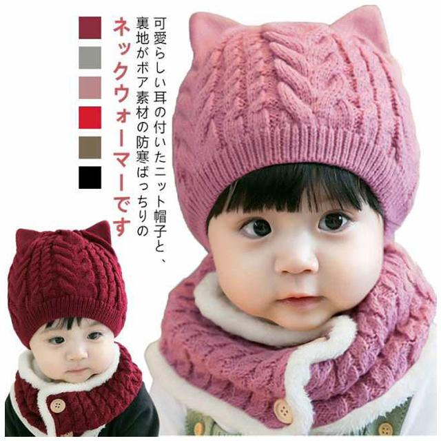 猫耳 耳付き ニット帽 ネックウォーマーセット ニット帽 猫耳付き 赤ちゃん 帽子 ねこ耳 あったか マフラー 子供用 ベビー 防寒 ちくちくしない ネックウォーマー 男の子 女の子 スヌード 出産祝い 誕生日 ギフト クリスマス 韓国子供服