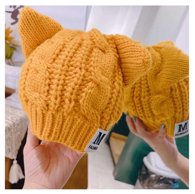 ニットキャップ 家族 猫 女の子 ニット帽 猫耳 ねこ ニット帽 子供 男の子 キッズ こども 帽子 キッズ 可愛い お揃い 耳付き おしゃれ カジュアル 定番 ジュニア 防寒 かわいい