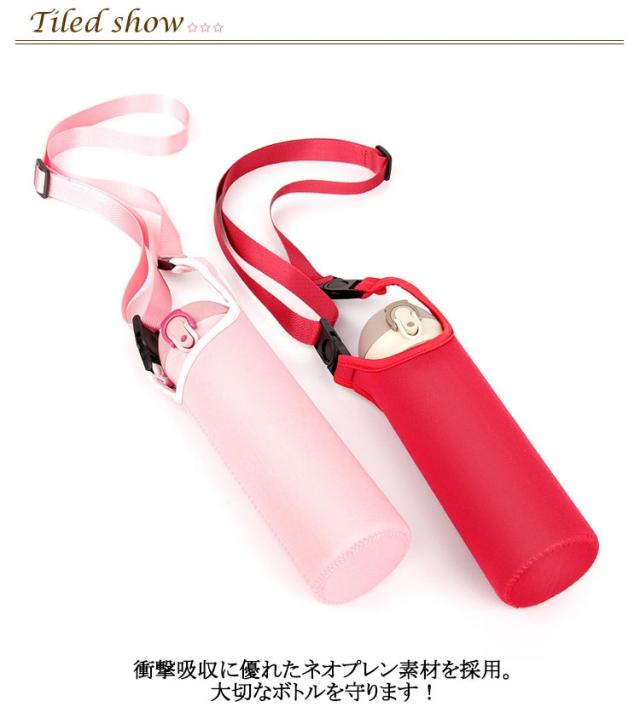 | 500m 400mlのペットボトル、水筒にピッタリフィット♪ 手提げ部分を持ってそのまま持ち運んでもOK。 付属のストラップを付けて肩掛での持ち運びも可能! ジョイントバックルを外せばリュック、カバンにつけたり 手すりなどにぶら下げることもできます。 衝撃吸収に優れたネオプレン素材を採用。 大切なボトルを守ります! | |