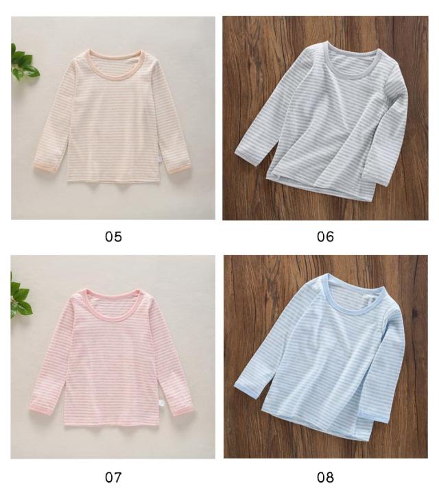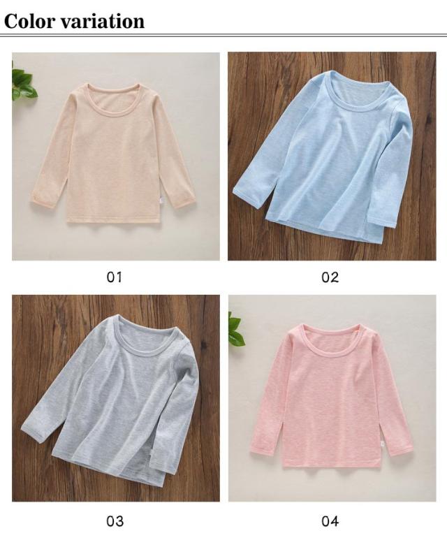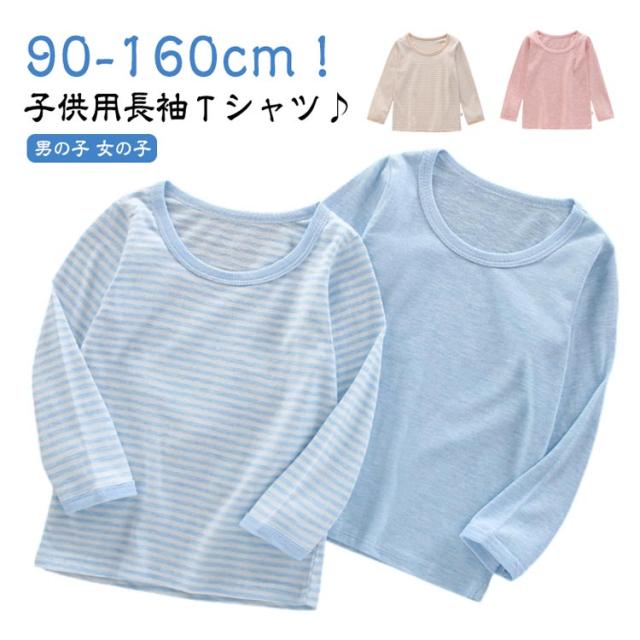 長袖Tシャツ キッズ 男の子 女の子 長袖 tシャツ カットソー 子供服 クールネック 丸首 インナーシャツ 綿100% コットン インナー トップス 無地 ボーダー 薄手 肌着 春 秋 冬 通気性 ジュニア ベビー 男女兼用 送料無料 90 100 110 120 130 140 150 160cm