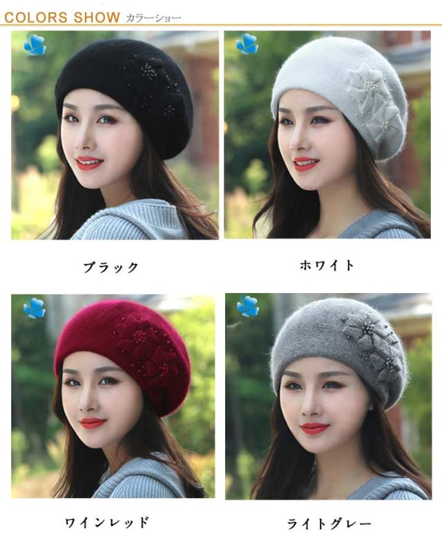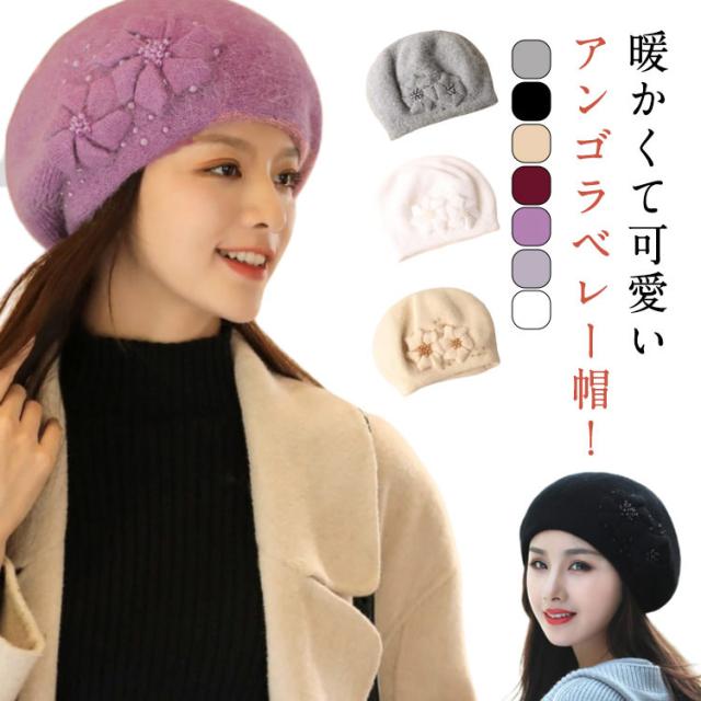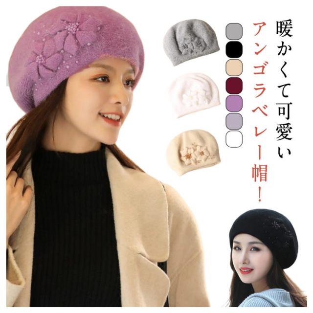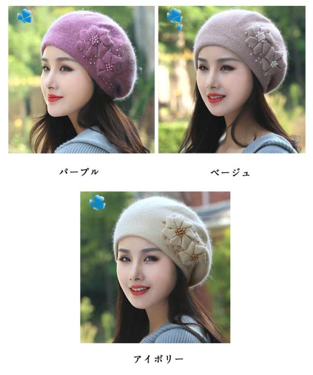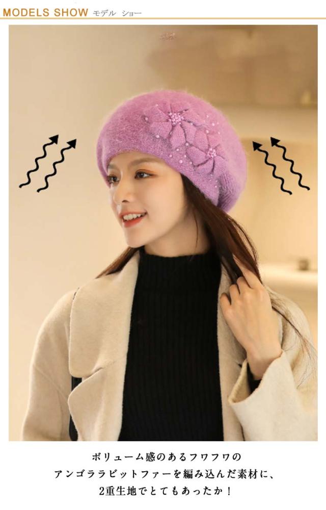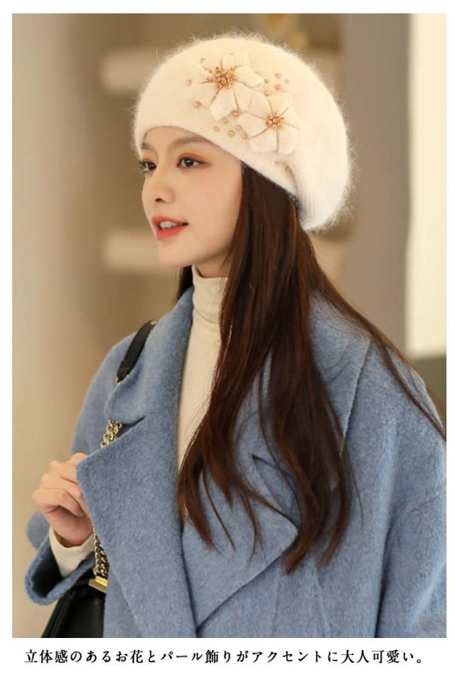 ラビットファー パール ベレー帽 ふわふわ アンゴラ 暖かい ベレー帽 二重生地 秋物 秋冬 花 アンゴラベレー帽 レディース 冬物 送料無料 ニット ベレー ふんわり 防寒 上品 ミセス 可愛い 韓国ファッション